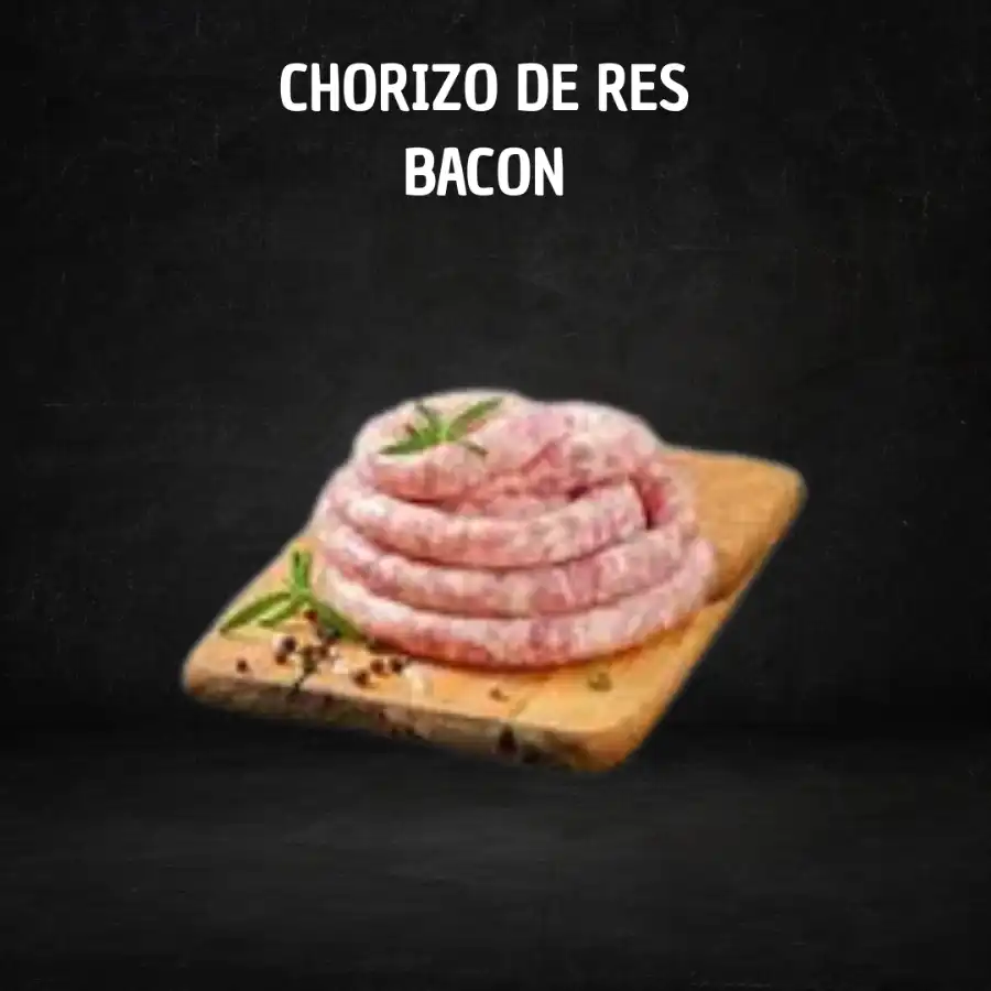 Chorizo de res con bacon, la mezcla perfecta entre la intensidad de la carne y el sabor irresistible del bacon crujiente. Ideal para parrilladas y momentos de sabor único.